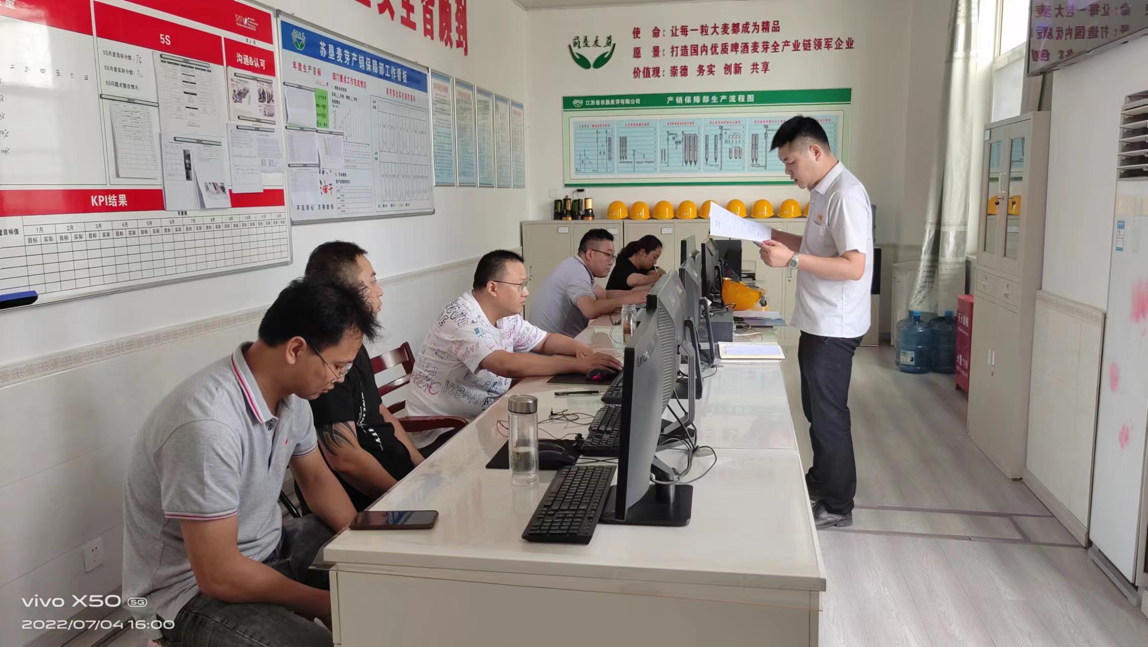 部門負責人首先傳達學習關于印發(fā)《江蘇省農(nóng)墾麥芽有限公司副產(chǎn)品管理制度(試行)》的通知精神,對文件精神進行解讀。一是部門所有當班人員要對所有出倉的副產(chǎn)品品種負責,切換品種出倉時,當班人員必須到現(xiàn)場確認空倉后再執(zhí)行切換,并留有記錄;二是副產(chǎn)品裝包要嚴格按照文件要求裝入對應顏色的編織袋;三是當班人員在出倉裝車過程中必須到現(xiàn)場抽樣確認副產(chǎn)品所裝車號、品種、編織袋顏色與所裝副產(chǎn)品是否一致,并簽字確認。