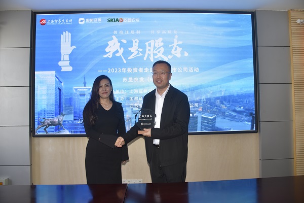 會上,國都證券財務(wù)管理總部副總經(jīng)理郭春艷向集團(tuán)公司黨委委員、蘇墾農(nóng)發(fā)副總裁、董事會秘書丁濤贈送“我是股東”活動紀(jì)念杯。