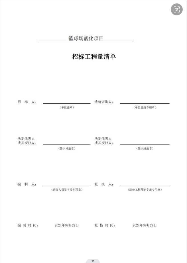 3、請盡快組織勘查現場,勘查現場后,在10月10日24點前工程量報價清單、授權委托書、營業(yè)執(zhí)照、資質文件、安全生產許可證復印件等簽字蓋章掃描發(fā)送至郵箱:jsnkmy2021@163.com。請將郵件主題名稱標注為:籃球場靚化項目