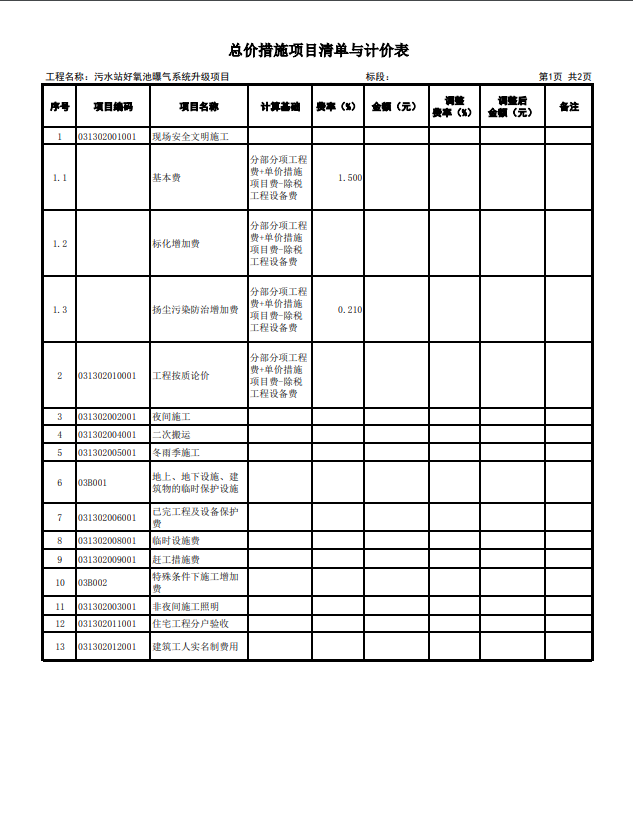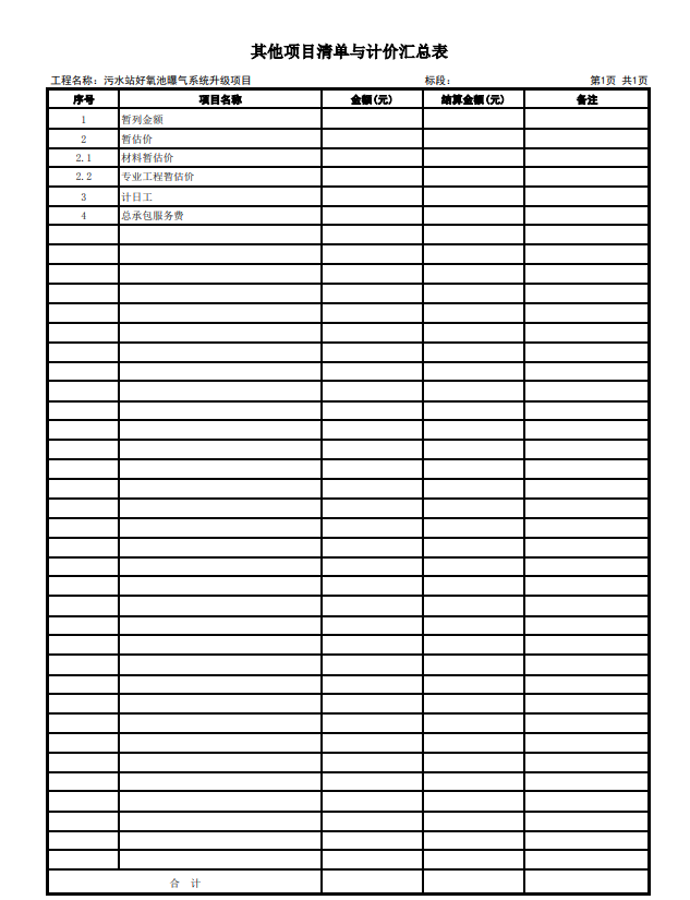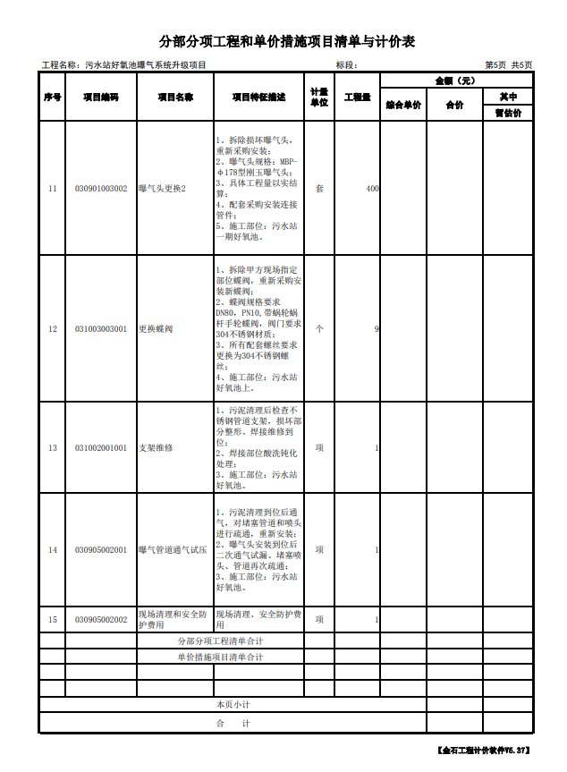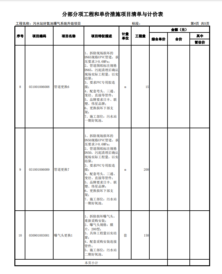 十、附件——《污水站好氧池曝氣系統(tǒng)升級項目報價清單》