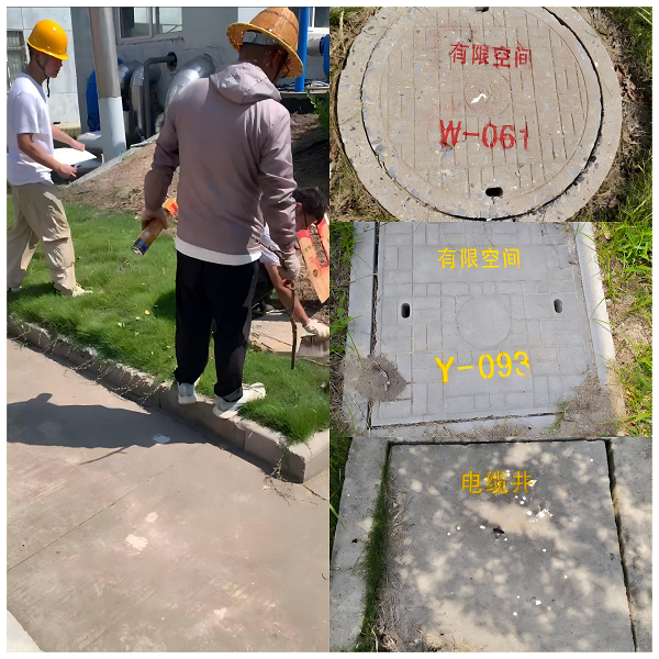 高溫肆虐,他們始終緊繃安全弦,佩戴整齊防護(hù)用品,手握噴漆工具沉穩(wěn)細(xì)致地工作,汗水浸透工裝,專注卻毫厘不差;醒目的紅黃標(biāo)識(shí),一道又一道,在井蓋周邊漸次延伸開來。上百塊井蓋被噴繪出清晰標(biāo)識(shí),如同在廠區(qū)織起一張堅(jiān)韌的安全防護(hù)網(wǎng)。