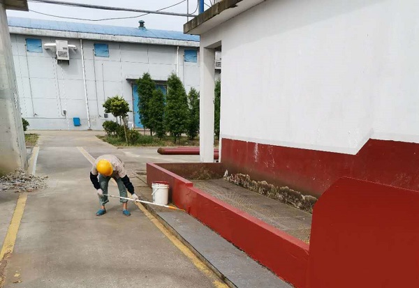 圖為水處理班組組員楊勝東進行地面垃圾池美化工作。