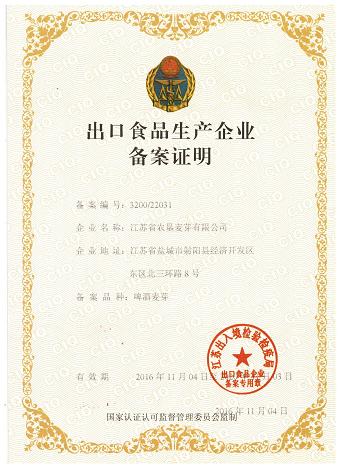 蘇墾麥芽公司通過(guò)出口食品生產(chǎn)企業(yè)備案復(fù)審